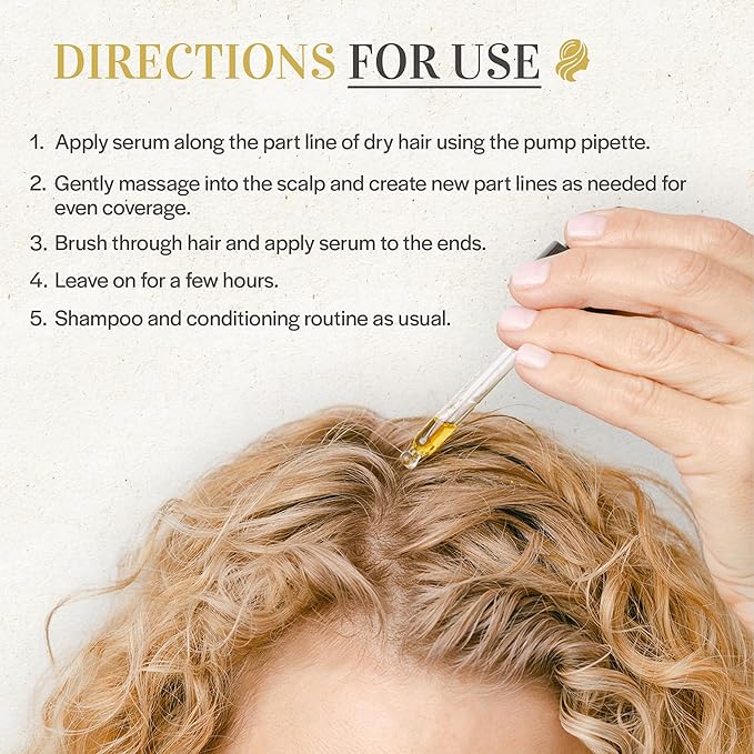 - Nourish from the Roots: Our hair growth scalp serum is packed with a unique blend of natural oils and vitamins designed to deeply hydrate your scalp, promoting optimal conditions for healthier hair growth.