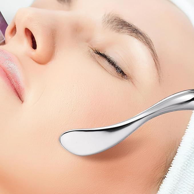 - Makeup spatula spoon: Use this cute spatula to scoop out all kinds of skincare like facial creams, wash-off masks, lip,cleansing balm, and more!such a beautiful tool massages the eye area and promotes around eye areas