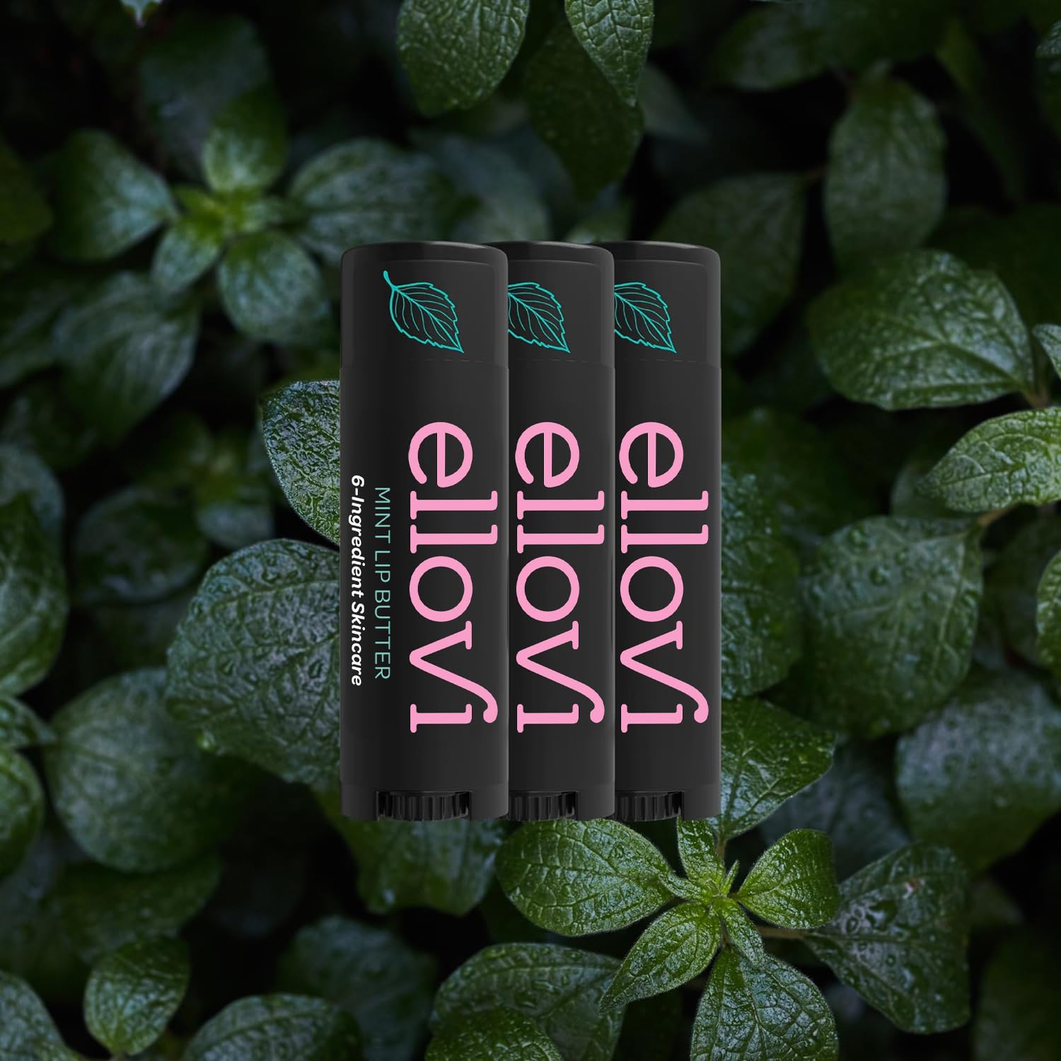 Ellovi Natural Lip Butter Lip Balm - Mint - Pure Enough to Eat - Made With Just 6 Vegan Ingredients - Moisturizing Lip Care for All Day Hydration (3-Pack)