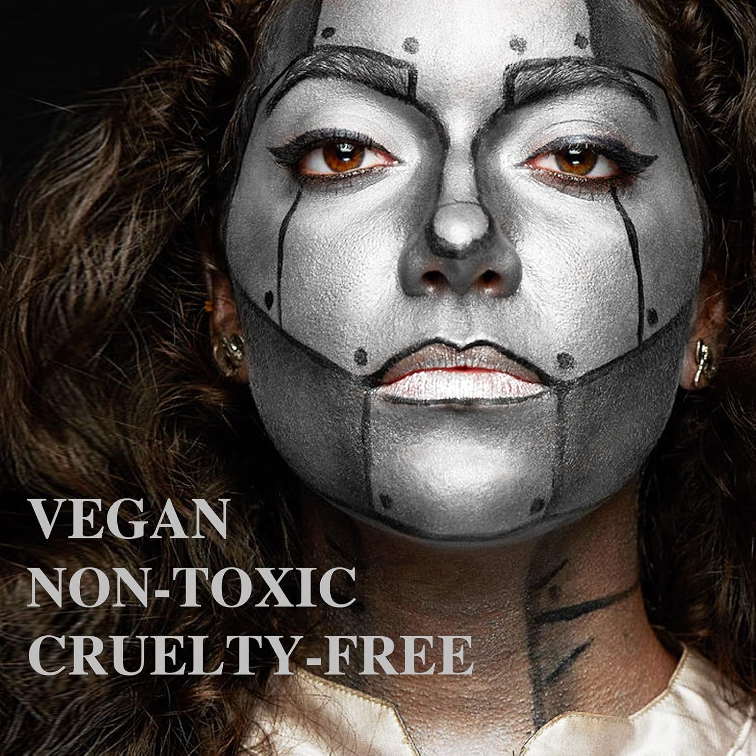 - High Pigment:Highly pigmented silver face paint stick,making it easy to color and have good coverage,only apply 1-2 layer for a great coverage.Fine texture ensures it evenly blend into the skin well,works well very smooth and stay around all day.It can also used as silver eye black stick,Halloween lipstick,lip makeup for a wide range of cosplay.