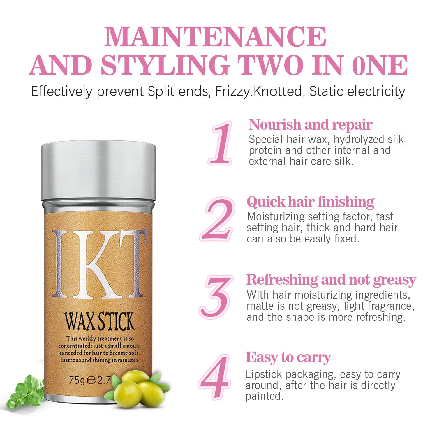 - 【Flying Hair Solution Set】 Flyaway hair taming stick set contains two products, suitable for different flyaway hair conditions.The set includes one hair wax stick and two hair finishing sticks