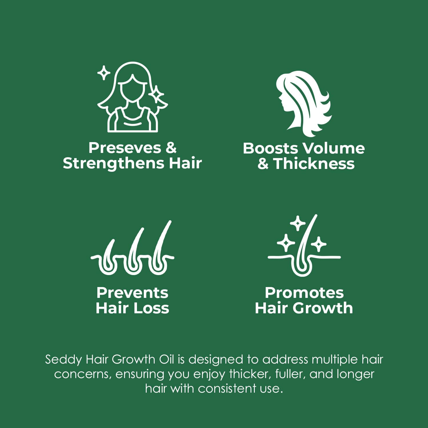 - ✔️ Thicker, Fuller, Longer Hair: Discover the magic of Seddy Natural Hair Growth Oil—an all-in-one solution for thicker, fuller, and longer hair. Our chemical-free formula harnesses the power of natural ingredients, ensuring your hair receives the care it deserves for optimal growth and vitality.