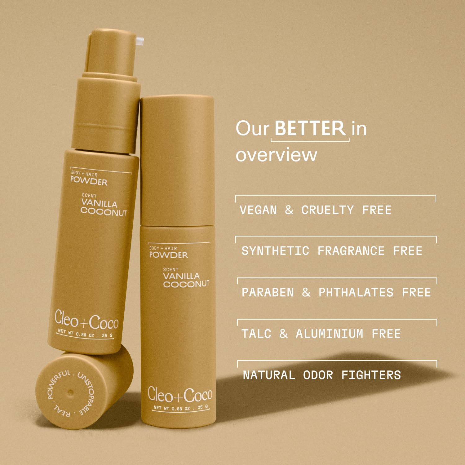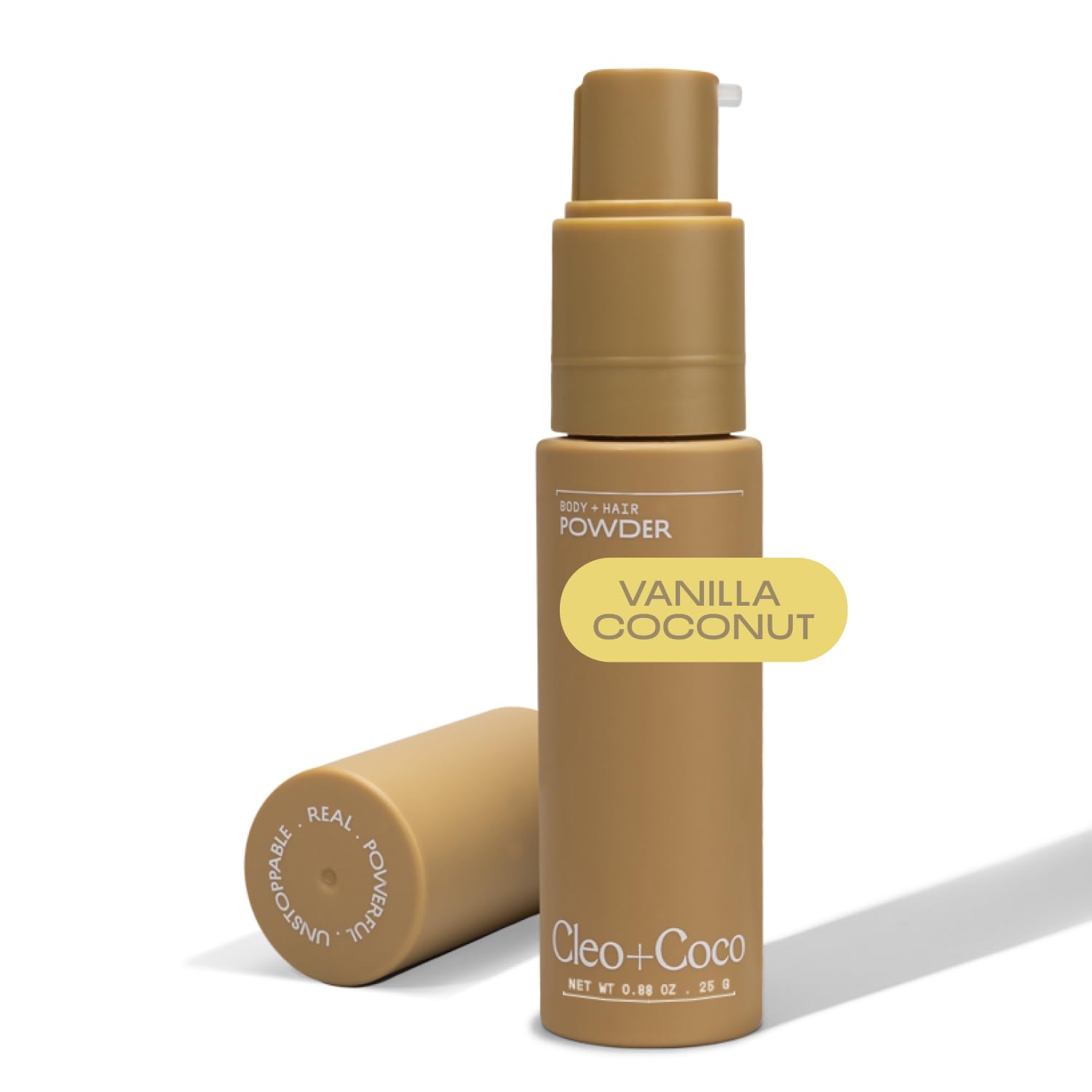 Cleo + Coco. Deodorant Powder for Body and Hair, Vanilla Coconut (0.88 oz), 2-in-1 Deo Powder & Dry Shampoo for Women & Men, Aluminum Free Deodorant, Talc-Free, Anti Chafe Protector, Travel-Size