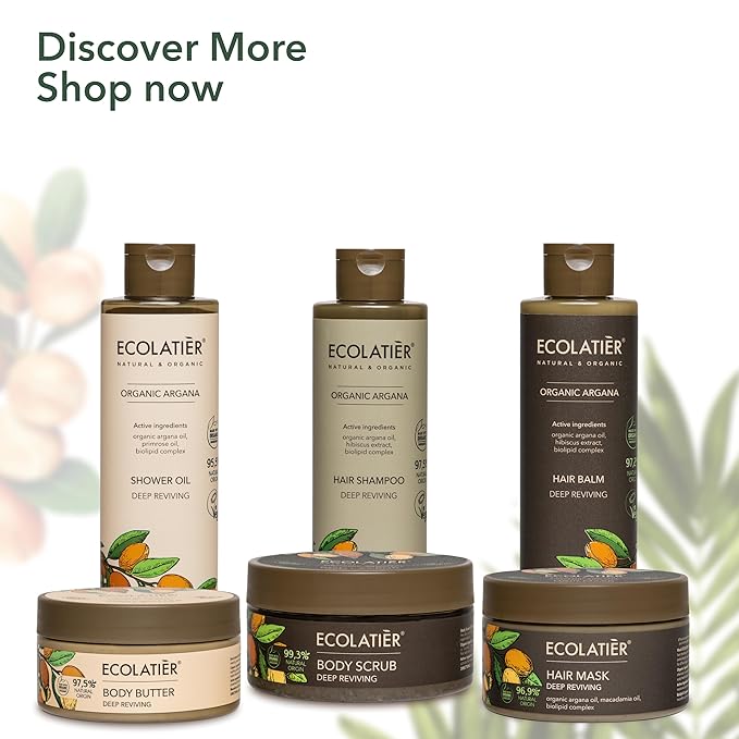 Organic Argana Oil Deep Reviving Vegan Hair Mask for damaged hair- ECOLATIER, 250ml - 96.9% Natural, Restores Shine, Argan & Macadamia Oils - 8.5 Fl Oz