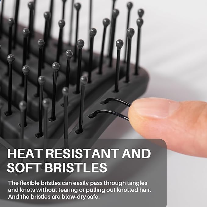 - 【Reduce Tangles】The soft and elastic comb teeth can easily pass through tangles and knots without tearing or pulling out knotted hair, minimizing pain, split ends and breaks.