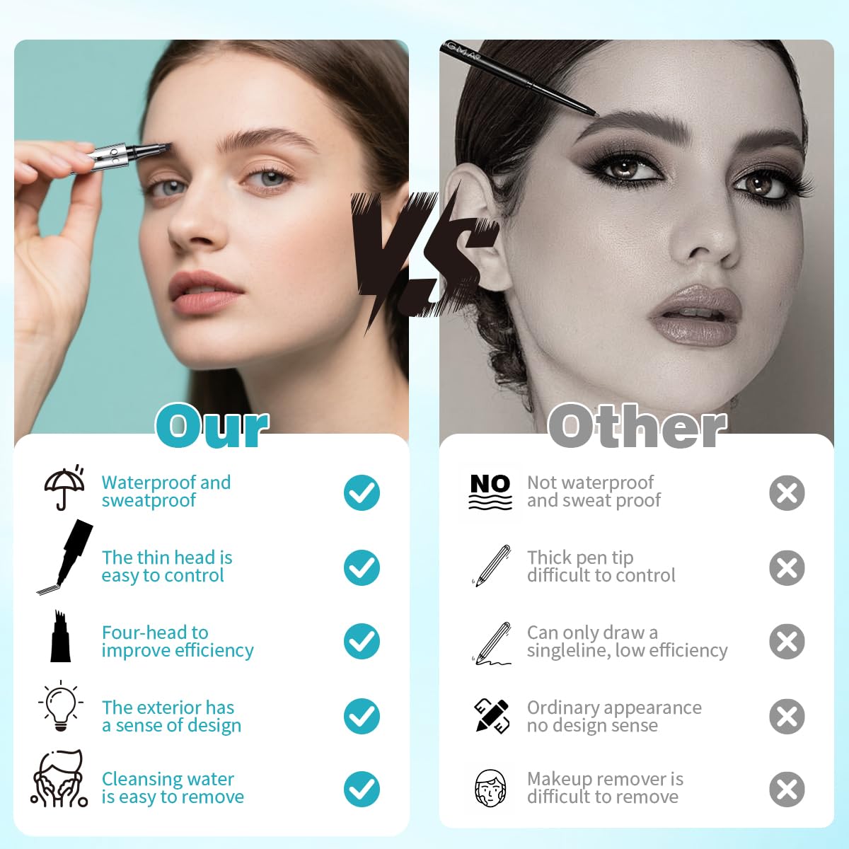 - 【Water-proof and Smudge-proof】: Our Eyebrow Pen is water-proof and smudge-proof, ensuring that your eyebrows stay put all day long. Whether you're caught in the rain or sweating during a workout, rest assured that your eyebrows will remain flawless.