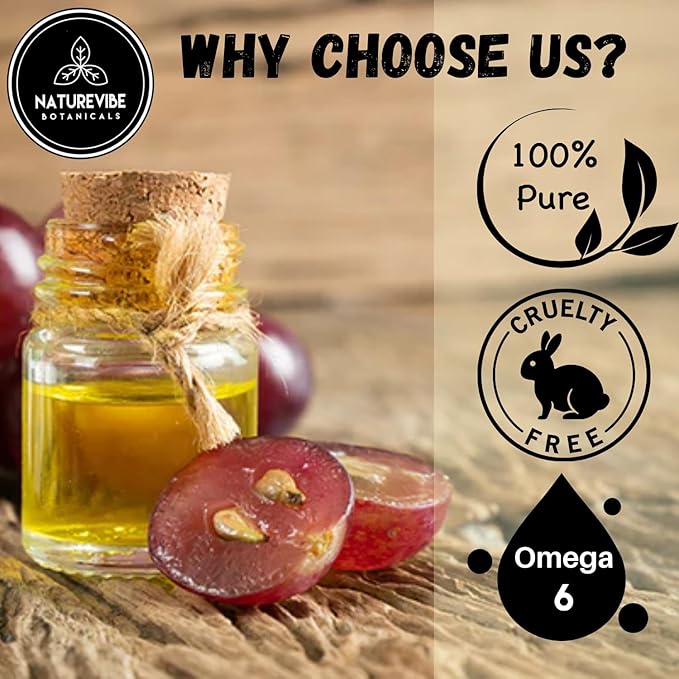 - ✅Naturevibe Botanicals Grapeseed Oil 32 Ounces Cold Pressed 100% Pure & Natural | Hydrating Oil for Hair, Nail & Skin | Non-Greasy Face and Body Moisturiser (946 ml)