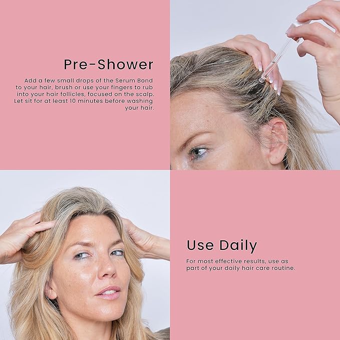 - How Does it Work?: Serum Bond's intelligent formula delves into the root of hair health. By penetrating the hair follicles, it fortifies from within, strengthening roots and stimulating growth. Infused with a blend of essential nutrients, it revitalizes your hair's natural beauty, ensuring it radiates resilience and vitality.