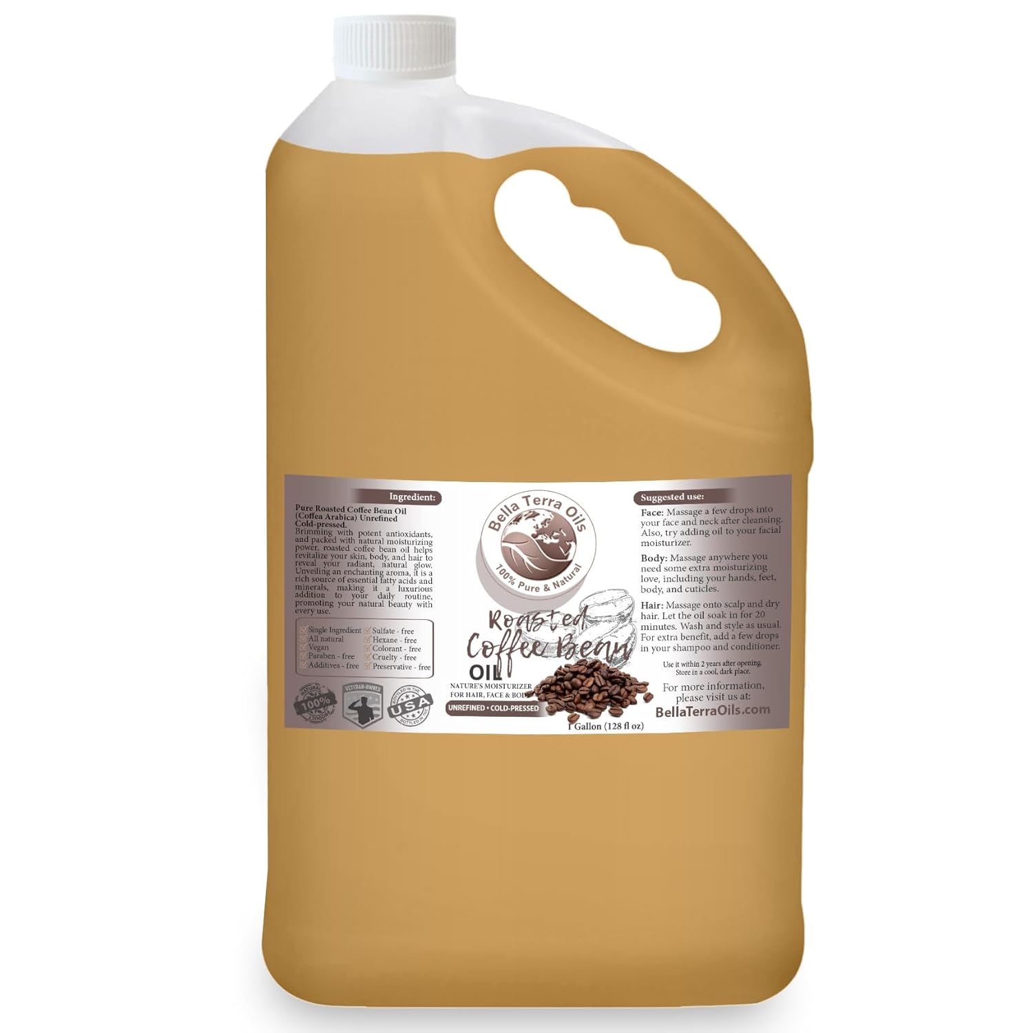 Bella Terra Oils Roasted Coffee Bean Oil for Skin and Hair – 1gallon, Cold Pressed Carrier Oil, Hydrating, Nourishing, Fast Absorbing