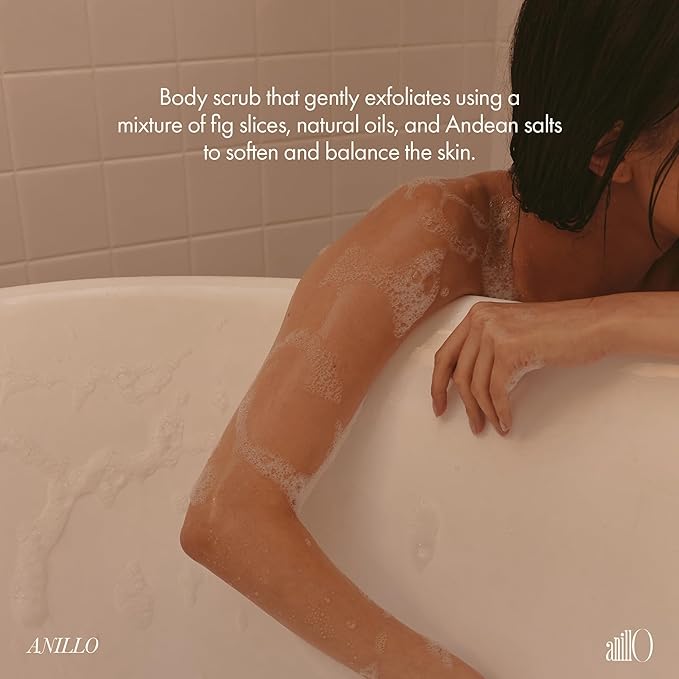 - Exfoliate & Revitalize: The vegan body scrub, enriched with Fig Seed Powder and Andean Salt, gently removes dead skin cells, detoxifies, and smooths rough patches, leaving your skin refreshed and renewed