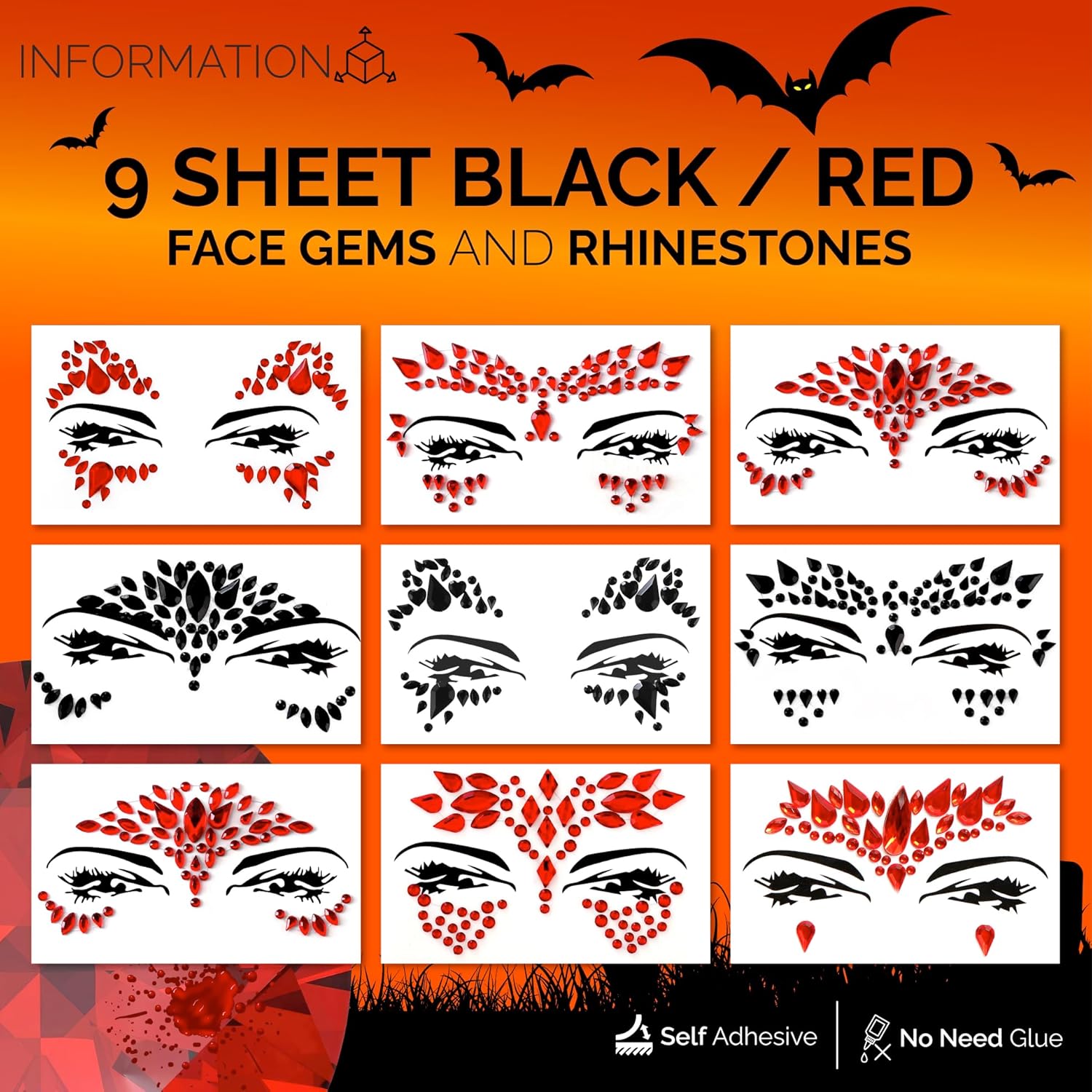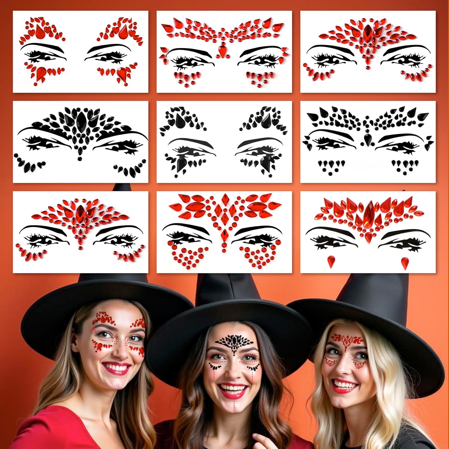 Face Gems Adhesive Glitter Jewel Tattoo Sticker Festival Gems Rave Party Body Make Up (9 PCS Z9ZAKRED-A)
