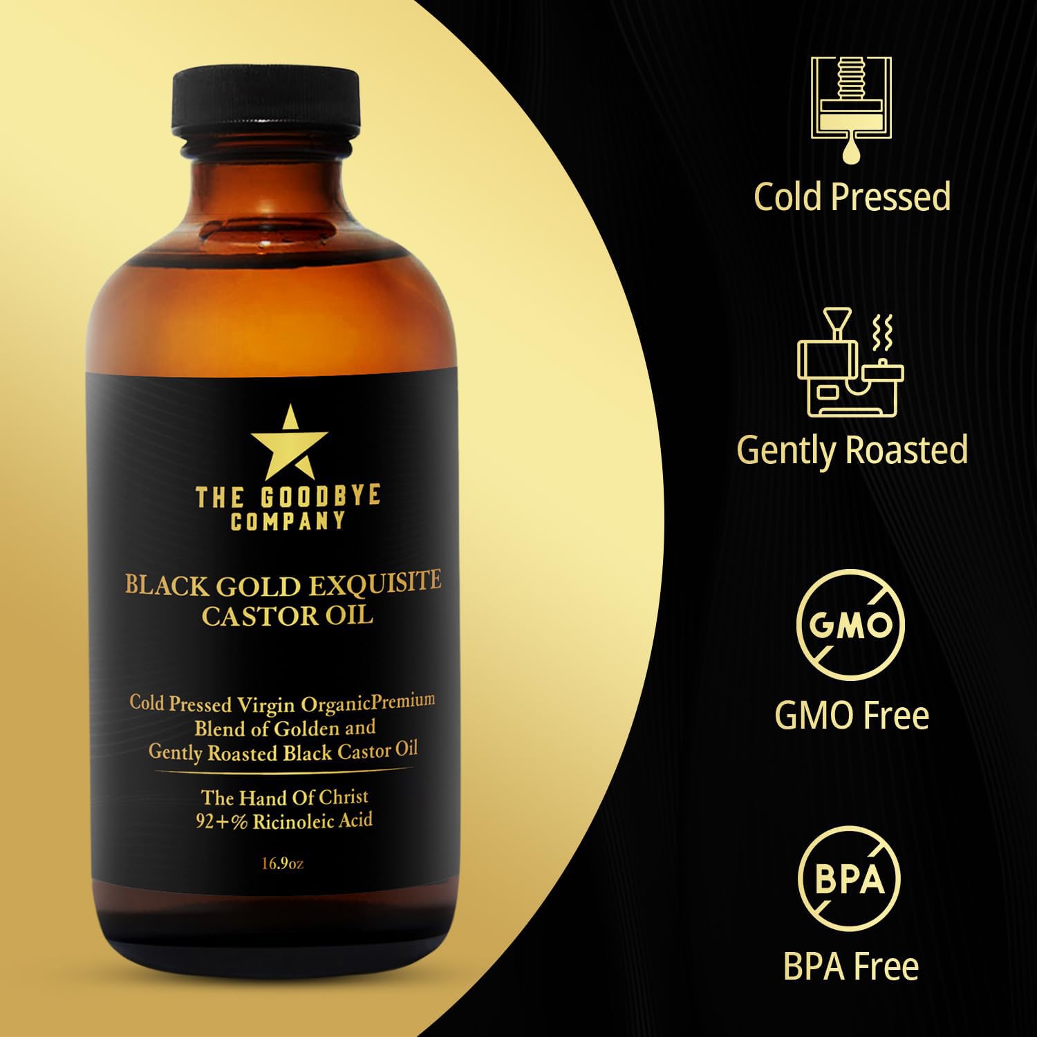 The Goodbye Company 100% Pure Organic Jamaican Black Castor Oil - Premium Cold-Pressed for Hair Growth, Skin Moisturizing, Eyelashes & Eyebrows - 16.9oz