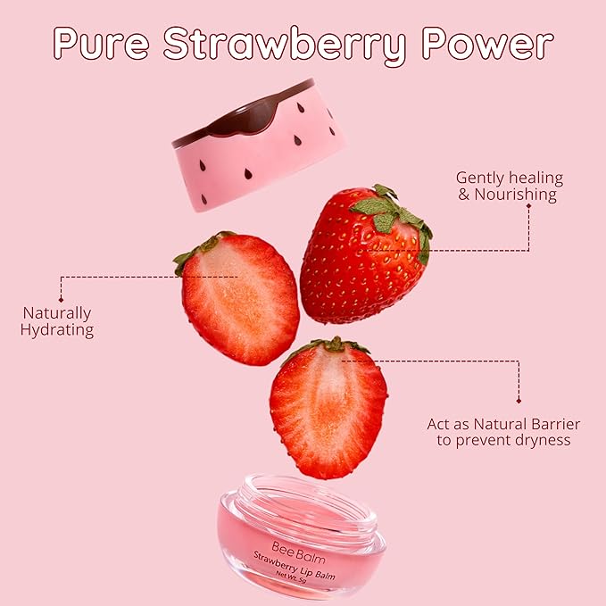 Original My Bee Balm Lip Balm - Strawberry Hydrating Balm Honey Pot for Dry, Chapped & Cracked Lips with Propolis, Honey & Vitamin E - Soften, Smooth & Reduce Lip Lines