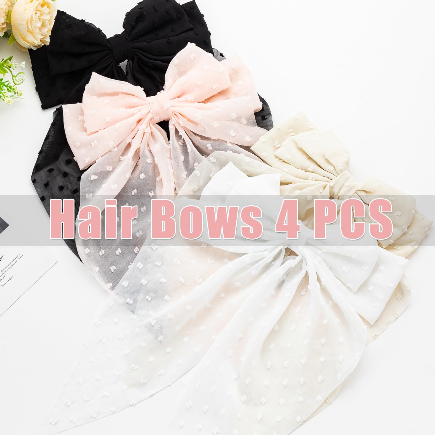 - Hair Bows 4 PCS Gauze Ribbon Bow for Women Revel in the supreme comfort our hair bows offer. Designed with a focus on wearability, they effortlessly stay in place throughout your day, providing not only a visual feast but also a practical and comfortable solution to enhance your daily look.