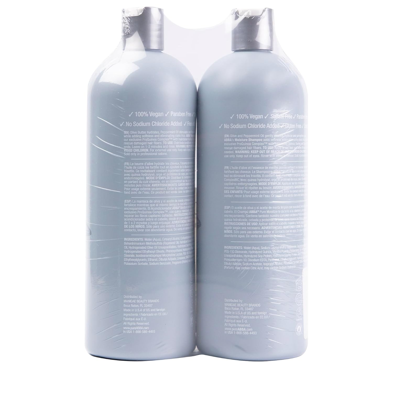 ABBA - Pure Moisture Shampoo & Conditioner Duo - Eliminates Frizz Cleanses, Hydrates & Strengthens Hair- Olive Butter & Peppermint Oil, 32 fl oz Each