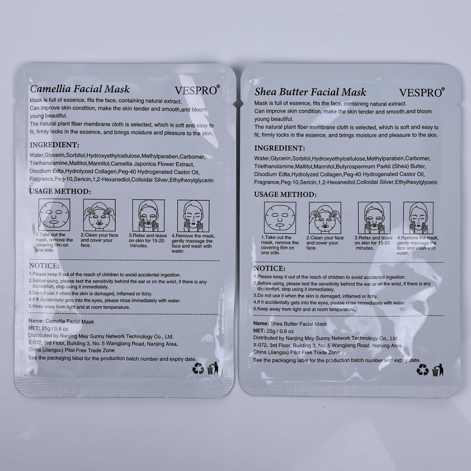 - 【How to Use】1.After cleaning the face,open the facial mask, 2.Spread the facial mask and gently apply it on the face, 3.Smoothing the pores of the facial mask to make it fit better, 4.After 15 minutes, remove the facial mask and massage the remaining essence to make the skin absorb.