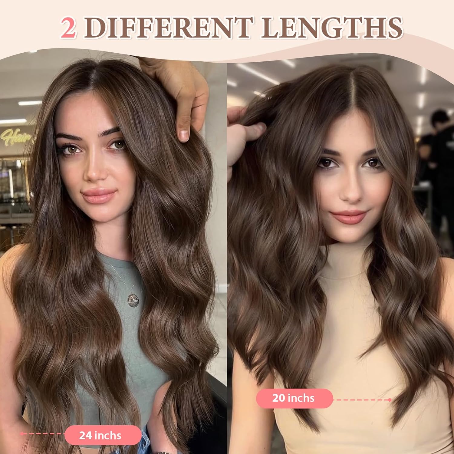 Clip in Hair Extensions for Women Chestnut Brown Long Wavy Hair Extensions Clip Ins 6PCS 16 Inch Synthetic Soft and Natural Thick Hair Pieces for Women