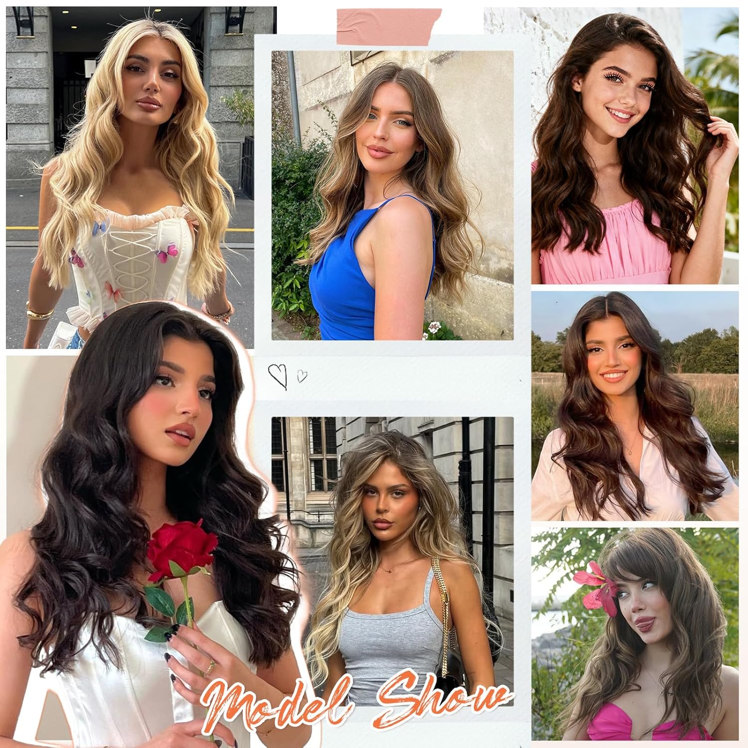 - ✅NATURAL WAVY LOOK – Soft synthetic fibers create flowing long wavy hair extensions that blend seamlessly with your own strands for a natural, everyday style.
