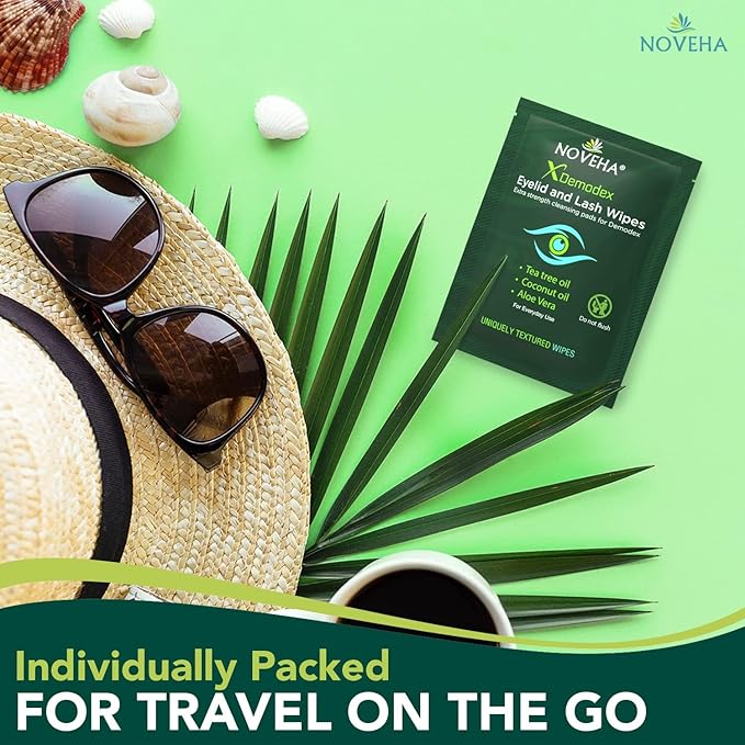 - BACKED BY SCIENCE: Our eyelid wipes undergo meticulous inspection for safety and quality. It’s time to start treating your eyes like they really deserve. Click ‘Add to cart’ and order your NOVEHA Demodex eye wipes TODAY!