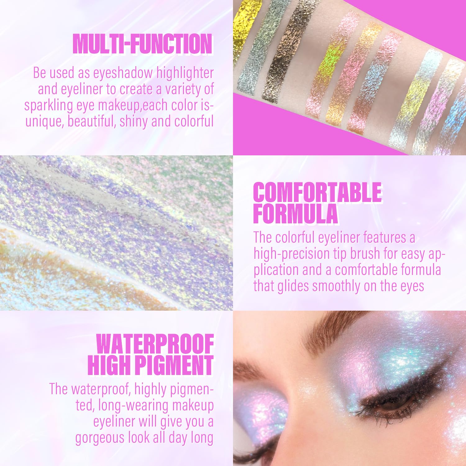 - 【comfortable & waterproof】The colorful eyeshadow features a high-precision tip brush for easy application and a comfortable formula that glides smoothly on the eyes, highly pigmented eyeliner will give you a gorgeous look all day long