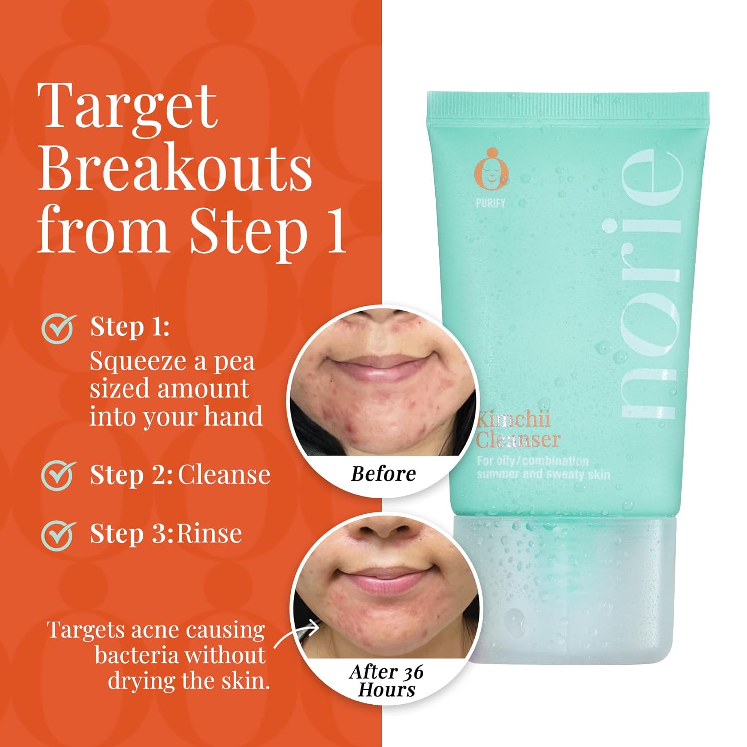 - Targets Normal, Oily & Combination and Breakout Prone Skin – Ideal for normal, oily, combination, sweaty and breakout prone skin types, Norie Kimchii cleanser helps balance oil production, remove excess oil and leaves your face feeling clean, clear, soft and fresh.