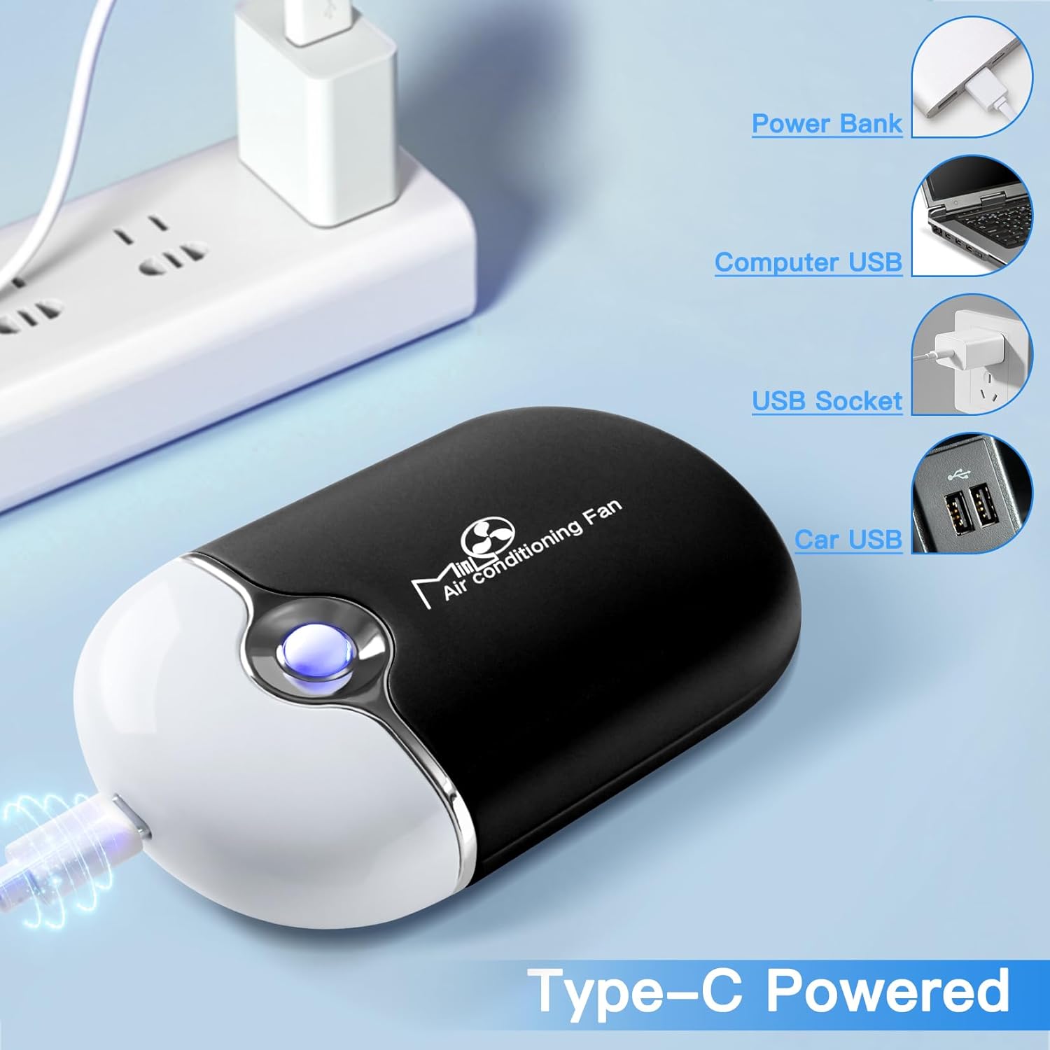 Lash Fan Mini Portable Eyelash - Handheld for Eyelash Extension Rechargeable USB C Air Cooling Blower Fan with Built in Sponge Lash Extension Application(Black)