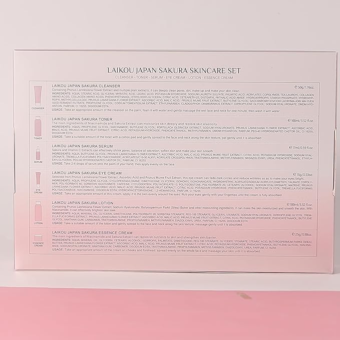 Skin Care Set JAPAN SAKURA Women Beauty Gift Sets Skin Care Kit with Cleanser, Toner, Lotion, Serum, Eye Cream, Face Cream Travel Kit for Women Teen Girls Mom Daughter TSA-friendly Sizes 6pcs