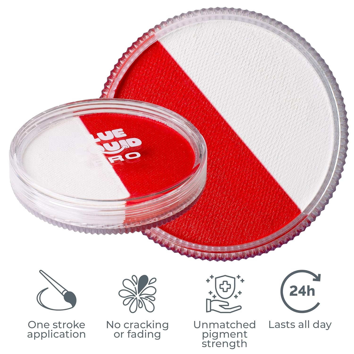 Blue Squid Face Paint Water Based Single Cake Professional Face Paint & Body Paint - Water Activated, Kids Adults Face Painting for Costume, Halloween Makeup, Cosplay - Red & White Face Paint 30g