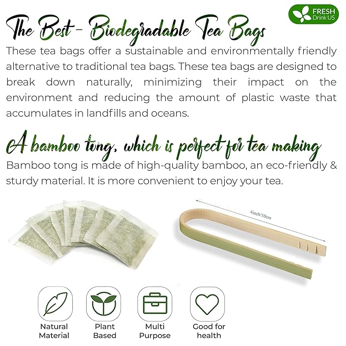 - ☘️ BIODEGRADABLE TEA BAG - NATURAL MATERIAL: Our tea bags are thoughtfully crafted using biodegradable materials, allowing you to enjoy your favorite brew while minimizing your ecological footprint. Join us in our commitment to a greener future with our sustainable and biodegradable tea bags.