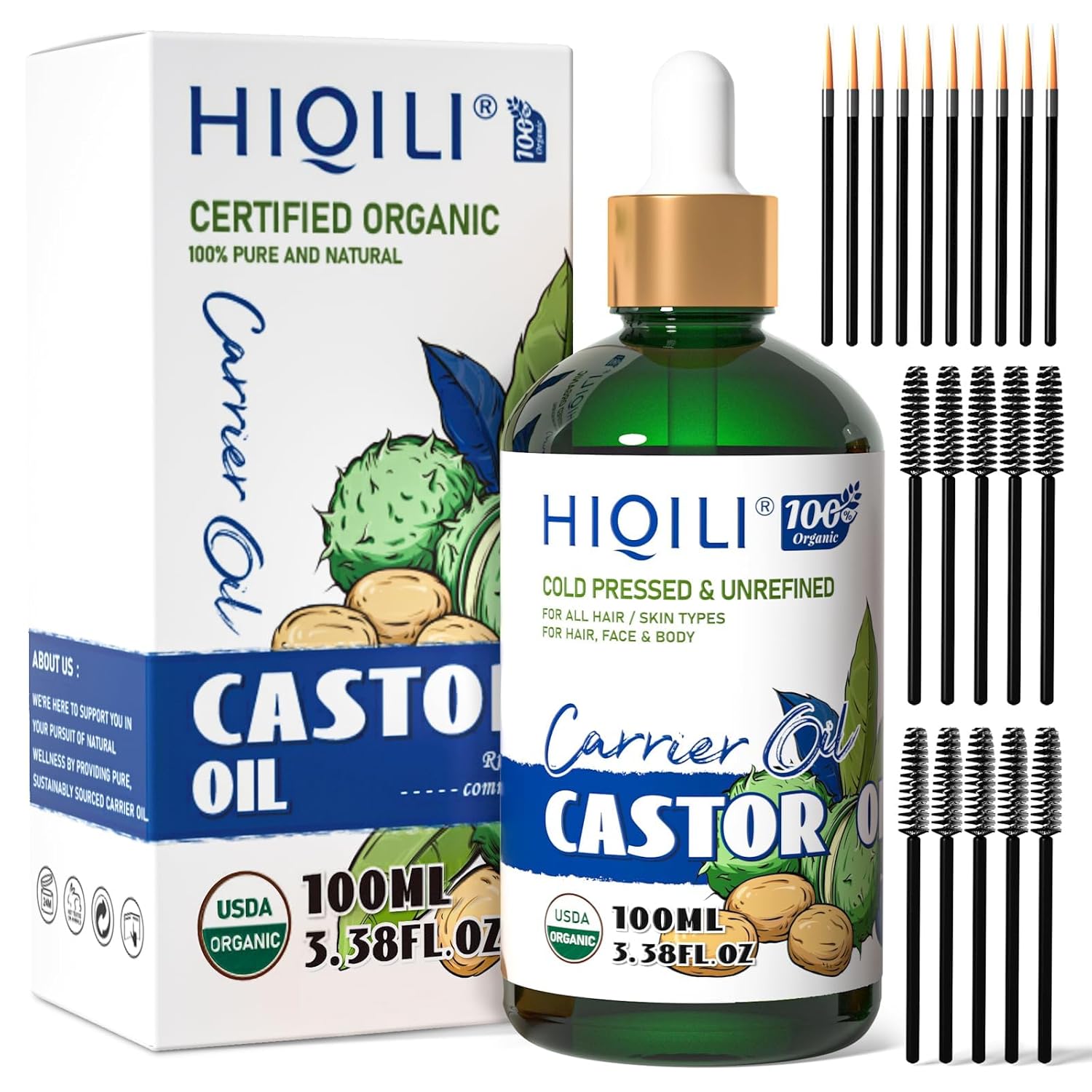 - Premium Quality: We source the finest quality castor and use a cold-press method to extract premium castor oil, preserving its natural properties and benefits. Hexane free and packaged in a glass bottle with a complimentary mascara brush and eyeliner