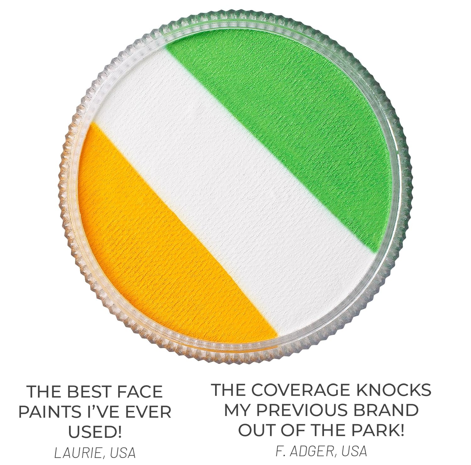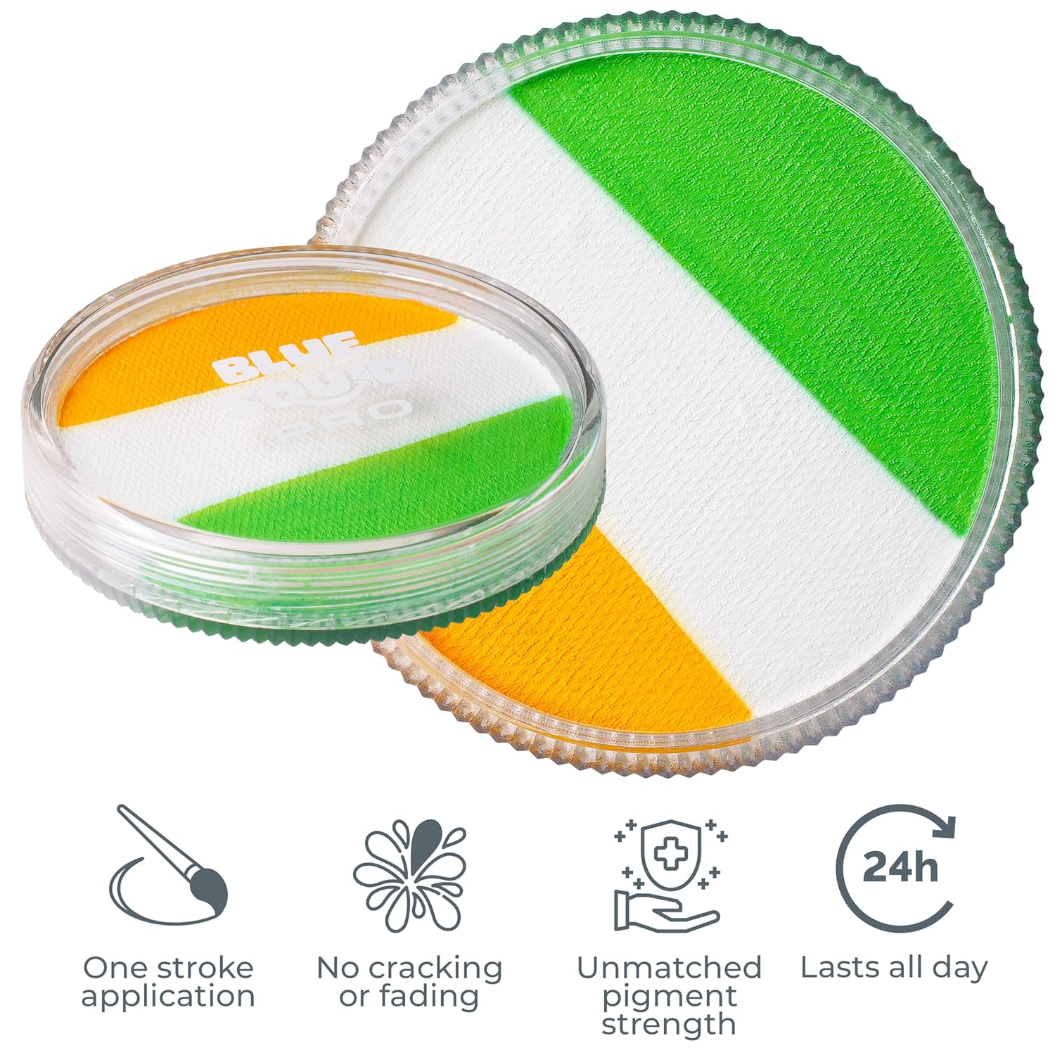Blue Squid Face Paint Water Based Single Cake Professional Face & Body Paint - Water Activated, Kids Adults Face Painting for Costume, Halloween Makeup, Cosplay - Green, White, & Orange Face Paint 30g