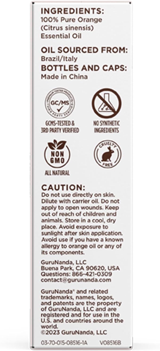 GuruNanda Orange Essential Oil (15mL) - 100% Pure & Natural - Undiluted - Premium Aromatherapy for Diffuser