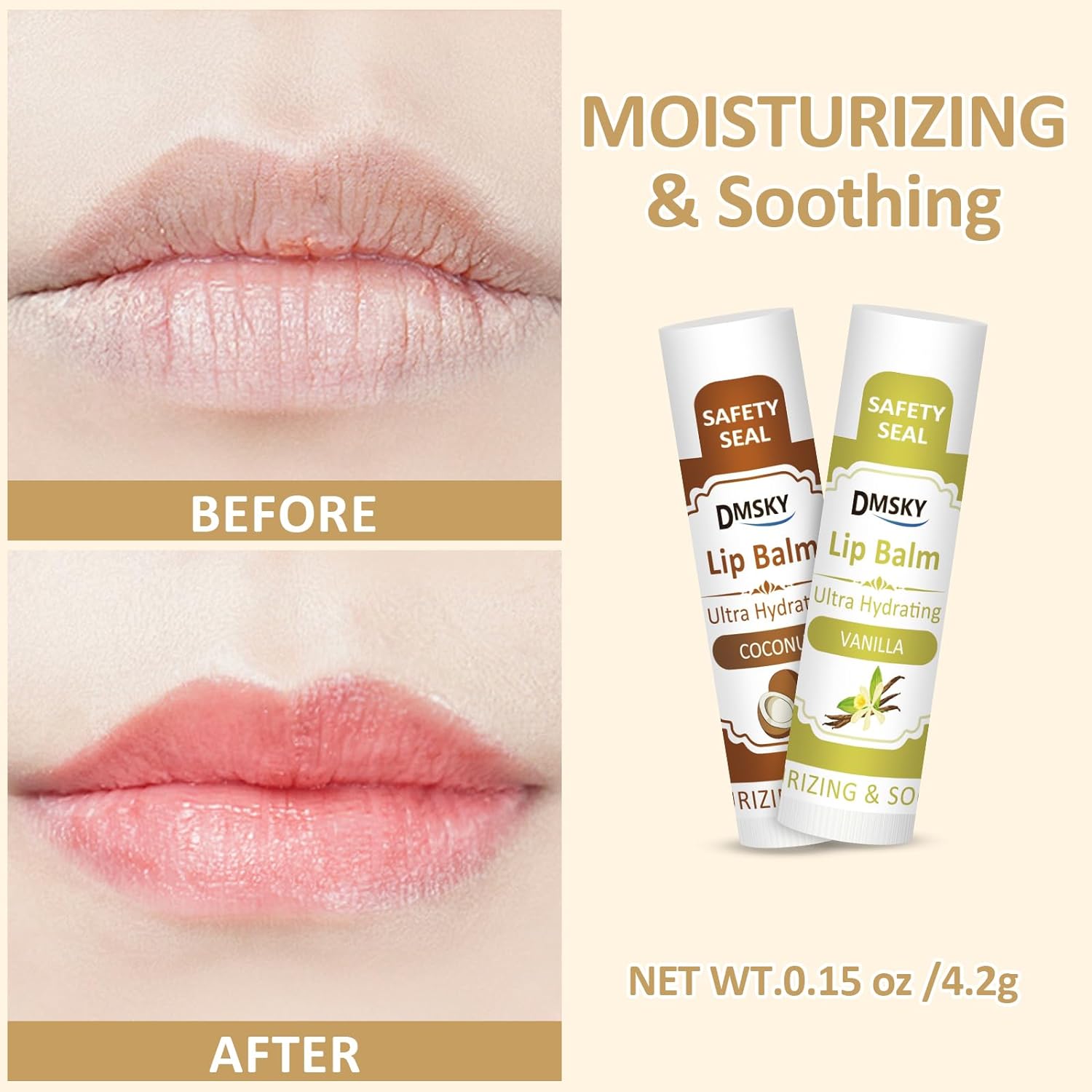 - 🥥【Natural Lip Balm】DMSKY lip balm bulk is rich in coconut oil and vitamin E, Paraben-Free. Phthalates-Free. Moisturize your dry Lips. Safe for Adults and Children of All Ages