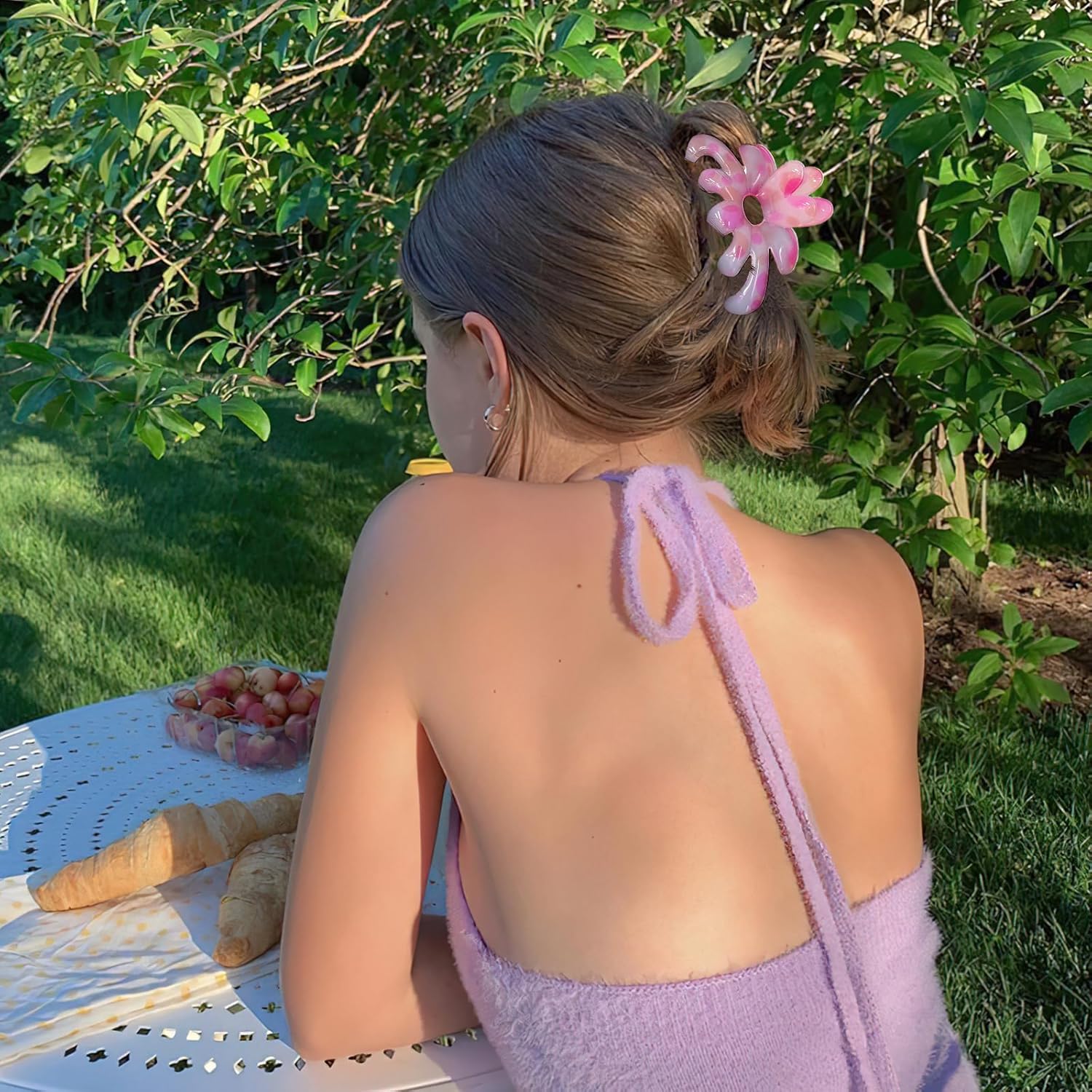 - 【Fun and Bold colors Add Cute Pop to Look】The unique and whimsical hair clips are a great way to jazz up any outfit or add a pop of color. The colors of the flower claw clips for hair is amazing, bright, vibrant, neon and very summery which will get lots of compliments from the cute wearing. The cute hair clips hold hair up snug and the decorative flowers gives any outfit a sweet touch whether you're going to the gym, mall, lunch, etc.