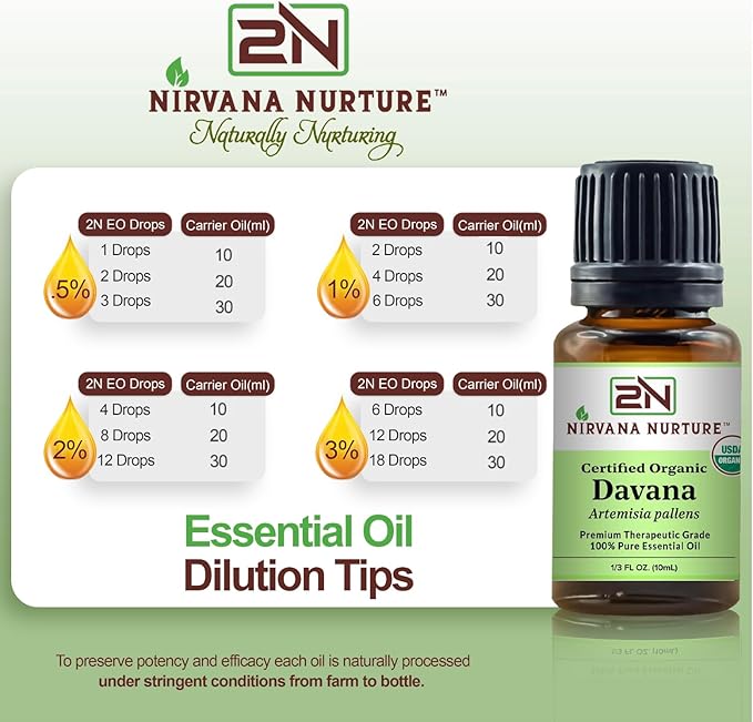 - CALM & RELAX: Nirvana Nurture Davana oil is used for calming and relaxation by diluting 3-4 drops of oil in your chosen carrier oil to gently massage, or by adding 8-10 drops into bath water to help to sleep and relax.