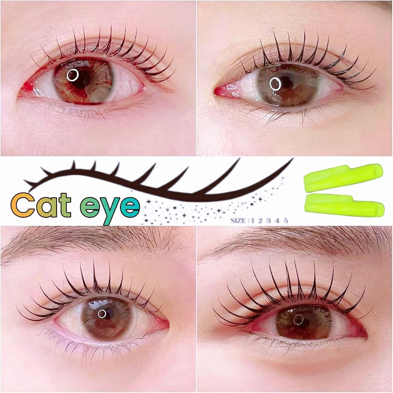 - J Curl Cat Eye Lift, 5 size lash shield for lash lift and tint. You need to prepare lash perm lotion and lash dye by yourself. Create a Natural Lash Curl look