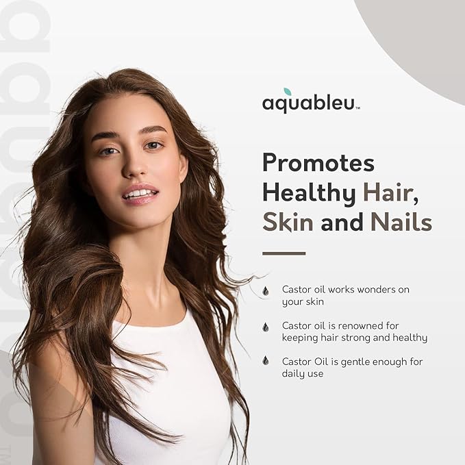 - 100% Pure Castor Oil, Cold-Pressed & Unrefined, Hexane-Free - Aquableu’s Castor Oil is 100% pure and all-natural, containing no additives, making this oil suitable for all skin and hair types. Our moisturizing and hydrating product is not sticky or greasy, ensuring a relaxing at-home experience that will leave your skin and hair feeling soft, while bringing out your natural glow.