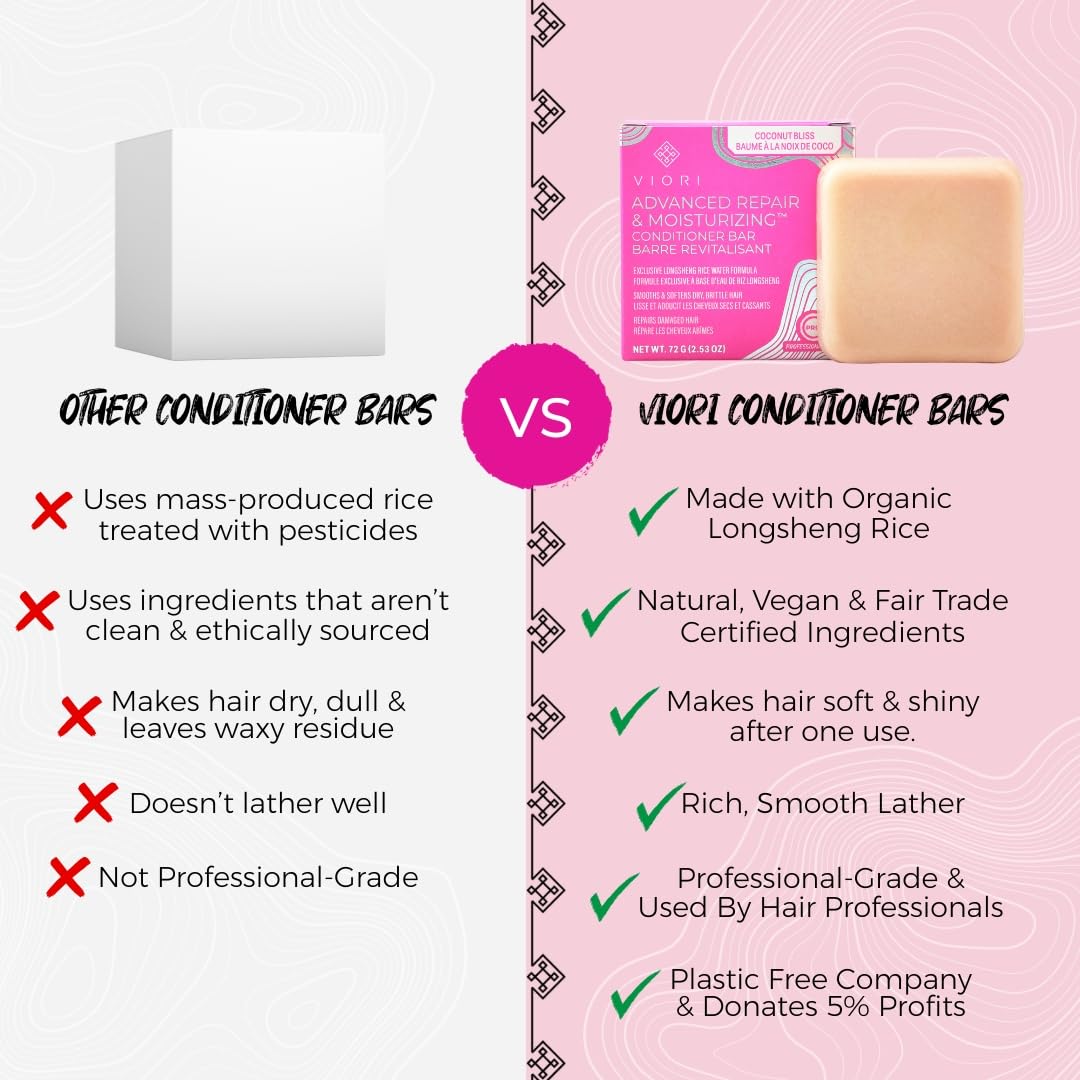 VIORI Coconut Bliss Advanced Repair and Moisturizing Conditioner Bar - Made with Rice Water and Vitamins for Hair Health - Handcrafted All Natural Conditioner Bar
