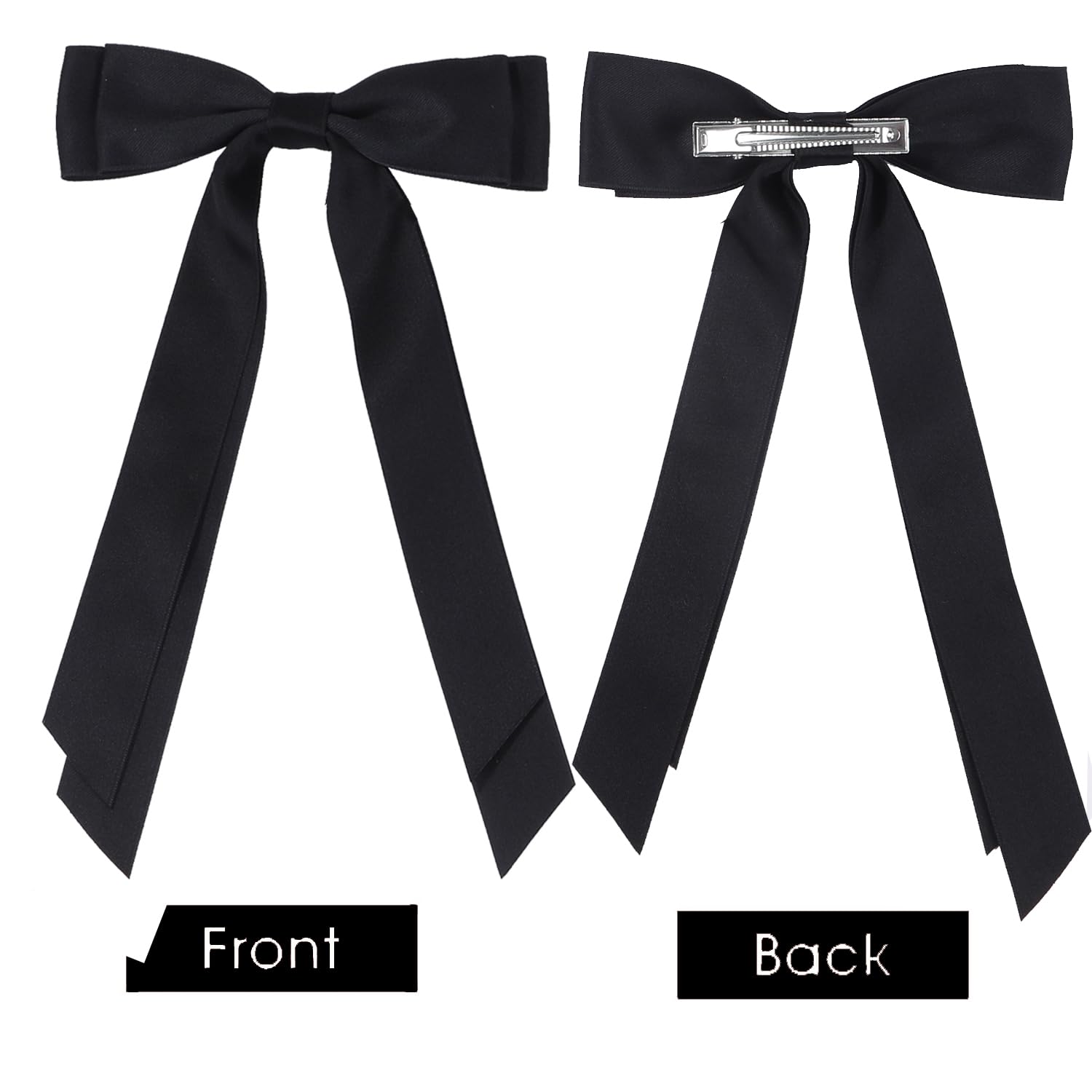 Satin Bow Hair Clips for Women, Silkly Satin Black White Hair Ribbon Bow with Long Tail Hair Accessories for Girls (Black White)