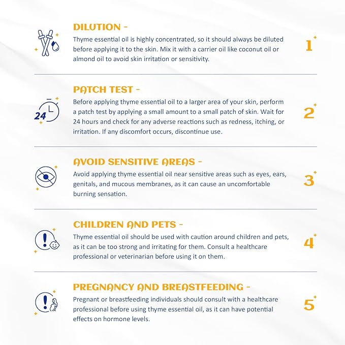 • Pure & Natural: Steam distilled from the thyme leaves from Spain, non-toxic, no additives, unfiltered and undiluted with no fillers