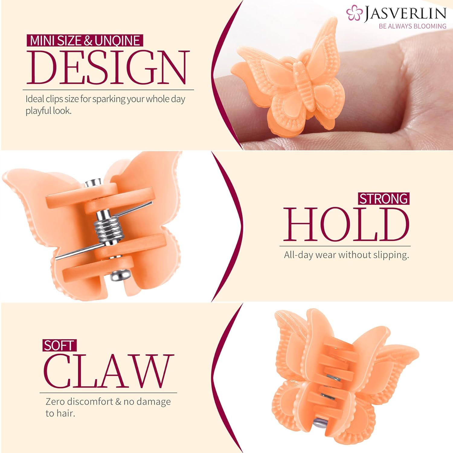 - Colorful Assortment: JASVERLIN's butterfly clips come in eight vibrant colors with six pieces per color and two random colors. These versatile hues complement every hair color, adding an inspirational touch to your daily hairstyle, outfit, and makeup