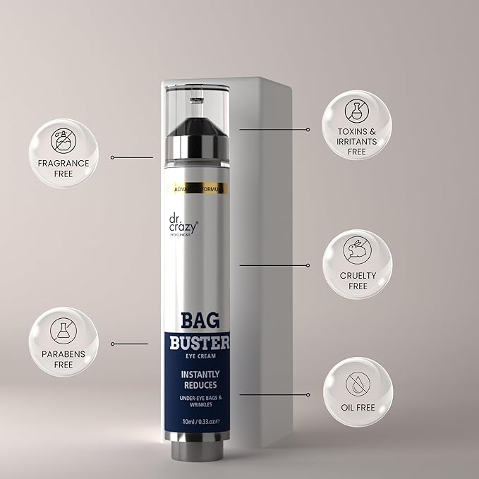 - FLAKE-FREE SMOOTH FINISH: Bag Buster delivers a natural, smooth glow—no powdery residue, no flaking. This all-in-one formula works as an under eye tightener, instant eye bag remover, puffiness corrector, and wrinkle filler for visibly firmer, refreshed eyes.