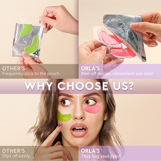 - [Effective Eye Mask]: The ingredients of ORLASKIN eye mask are rich in 24k gold nanopowder, which can stimulate the production of collagen. It is specially designed to target dark circles, puffy eyes, dullness around the eyes, eye bags, and eye wrinkles. It can also accelerate cells and collagen. Protein regeneration improves the skin texture and texture of the eye area, deeply moisturizes the area under the eyes, and enhances skin elasticity.