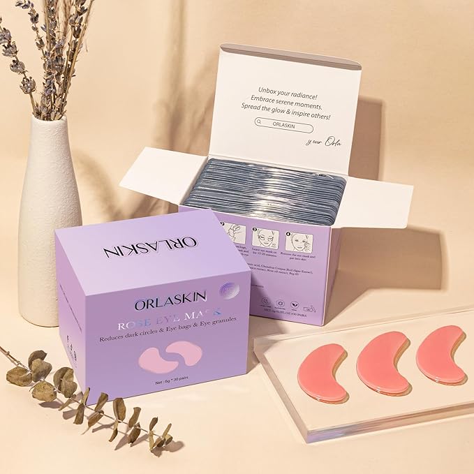 - [High-Quality Ingredients]: ORLASKIN eye mask is rich in collagen, rose extract and other mild ingredients, which can provide effective and long-lasting lightening and deep hydration and moisturizing for the skin around the eyes, deeply repair dark circles and fine lines around the eyes, thereby helping to soothe and Restore skin vitality and make eyes look refreshed. This set contains a total of 30 pairs of eye masks hyaluronic acid under eye patches.