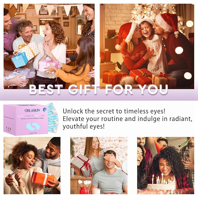 - [Effective Eye Mask]: The ingredients of ORLASKIN eye mask are rich in 24k gold nanopowder, which can stimulate the production of collagen. It is specially designed to target dark circles, puffy eyes, dullness around the eyes, eye bags, and eye wrinkles. It can also accelerate cells and collagen. Protein regeneration improves the skin texture and texture of the eye area, deeply moisturizes the area under the eyes, and enhances skin elasticity.