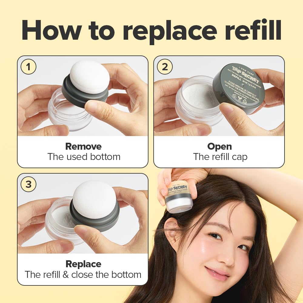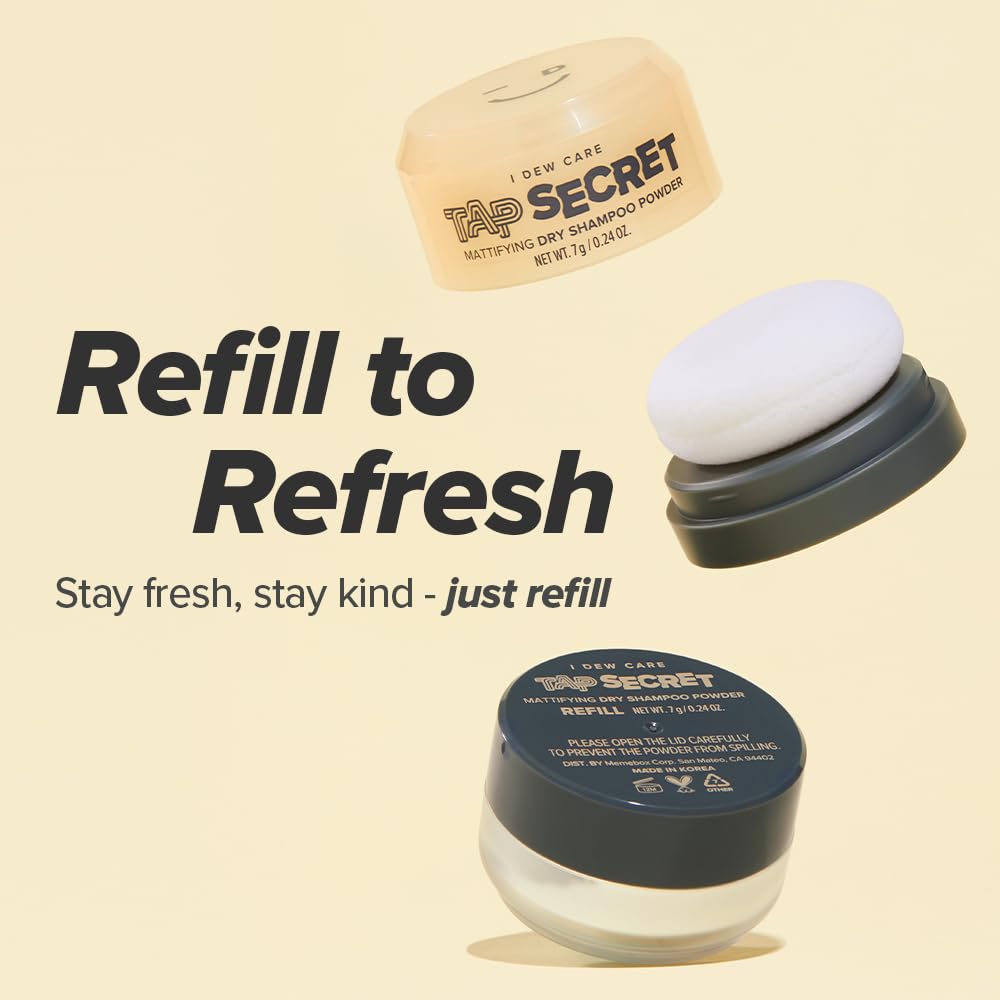 I DEW CARE Tap Secret Dry Shampoo Powder Refill with Biotin | Strengthening & Volumizing, Refillable, Travel size, Non-aerosol, Korean Ginseng, Dry Shampoo for Women, Women Stocking Stuffers, 0.24 Oz