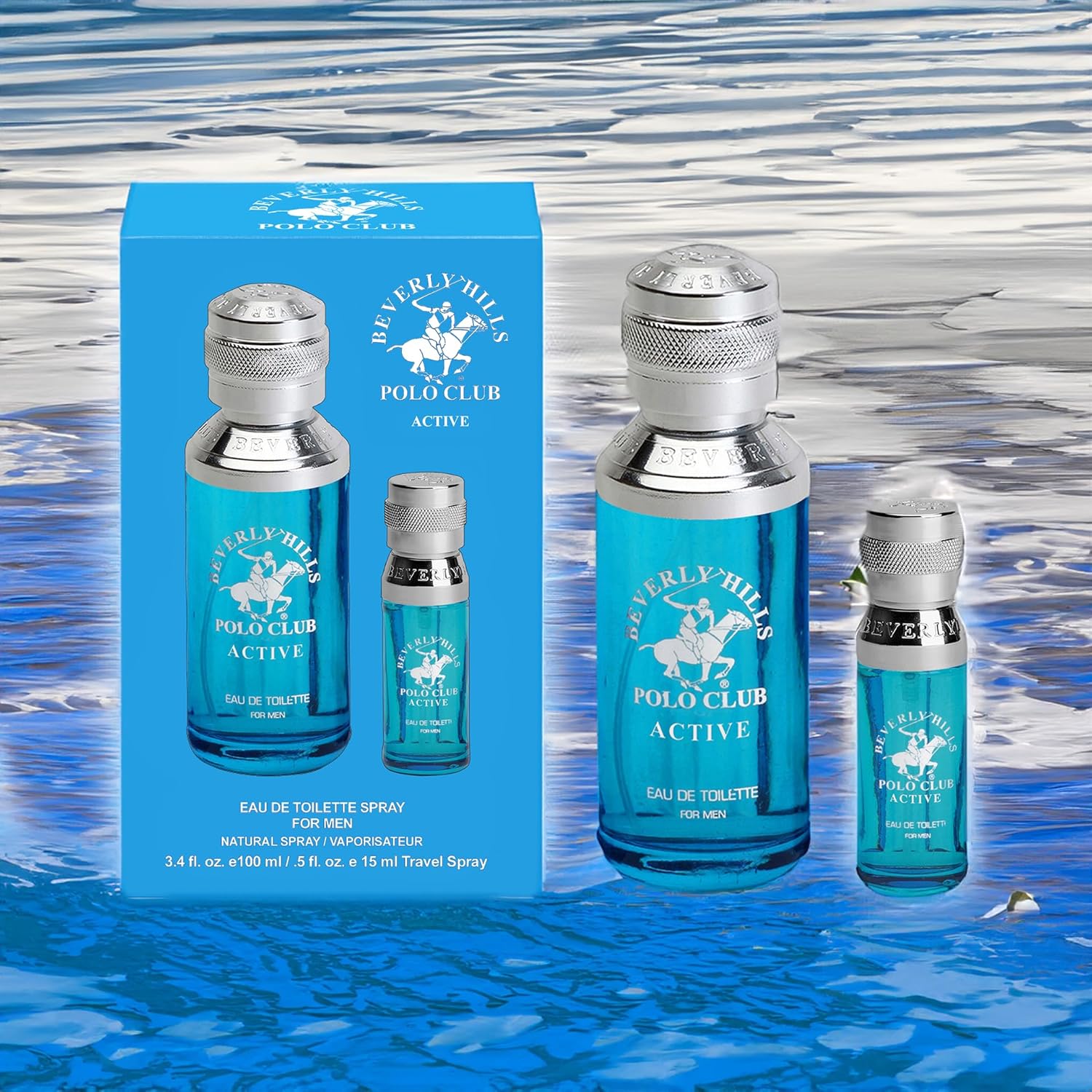 Beverly Hills Polo Club Active Cologne for Men - Designer Eau de Toilette Bonus Pack - 3.4oz & 0.5oz Travel Size - Long-Lasting Fresh Fragrance
