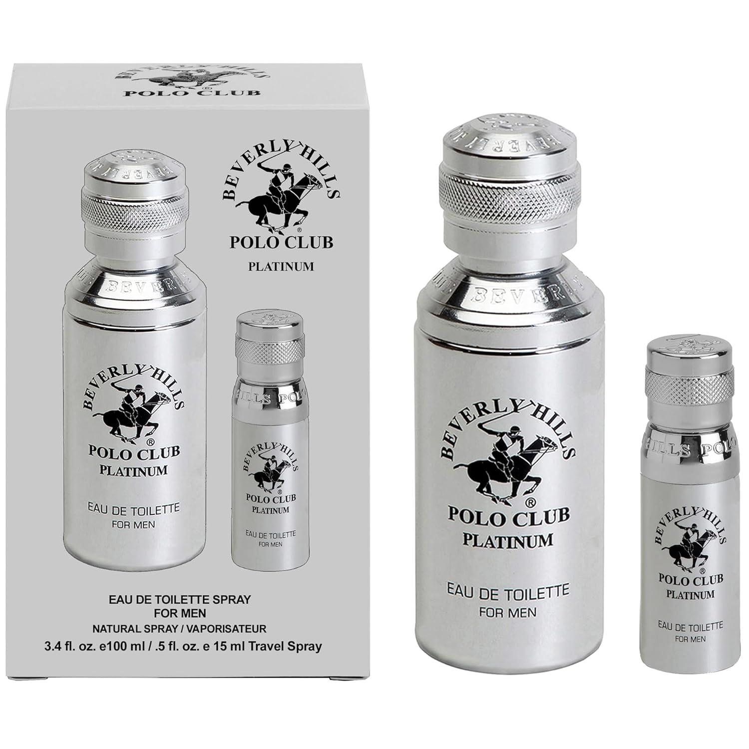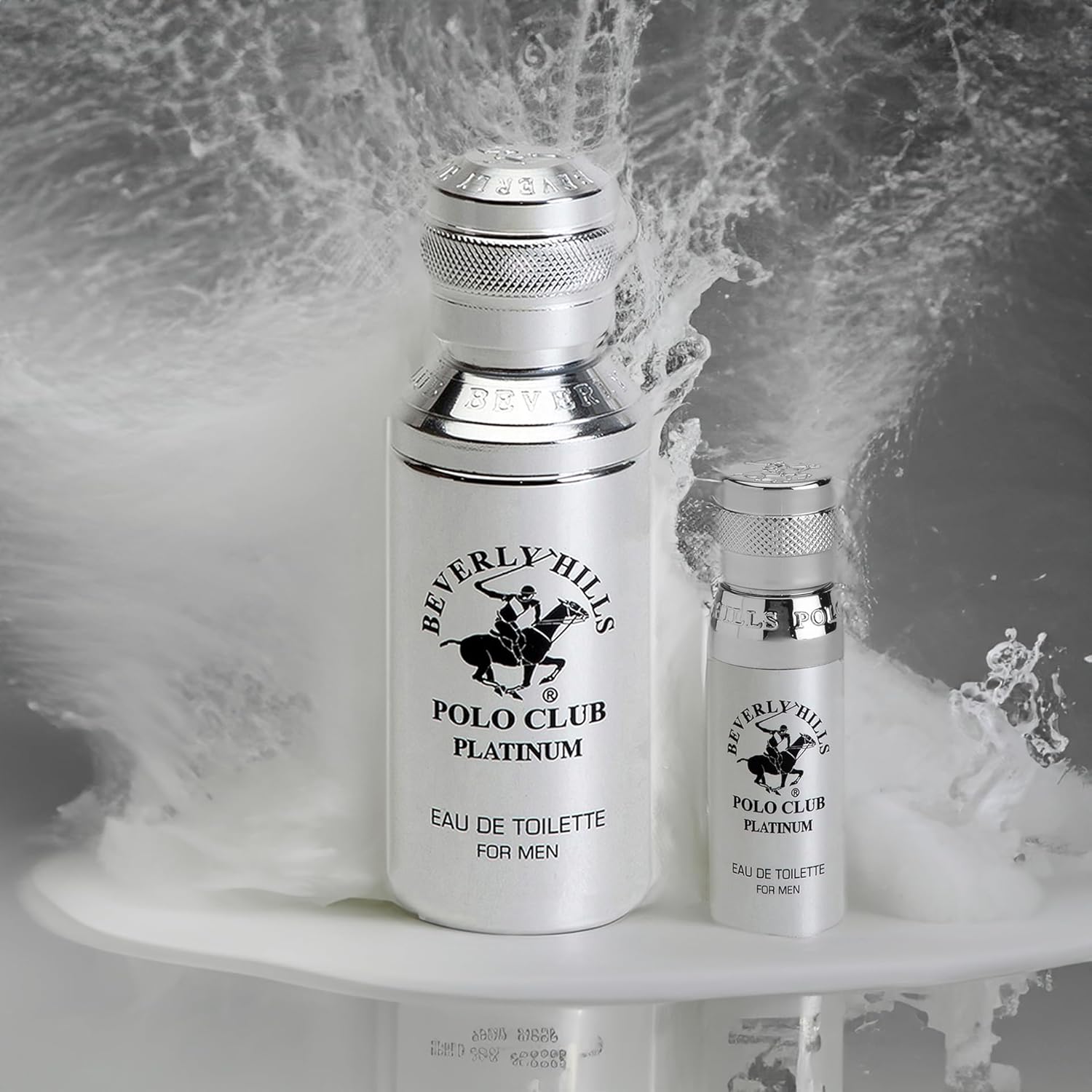 Beverly Hills Polo Club Platinum Cologne for Men | Designer Eau de Toilette Bonus Pack | Long-Lasting 3.4oz + Travel 0.5oz Spray | Alluring & Sophisticated Fragrance Gift Set