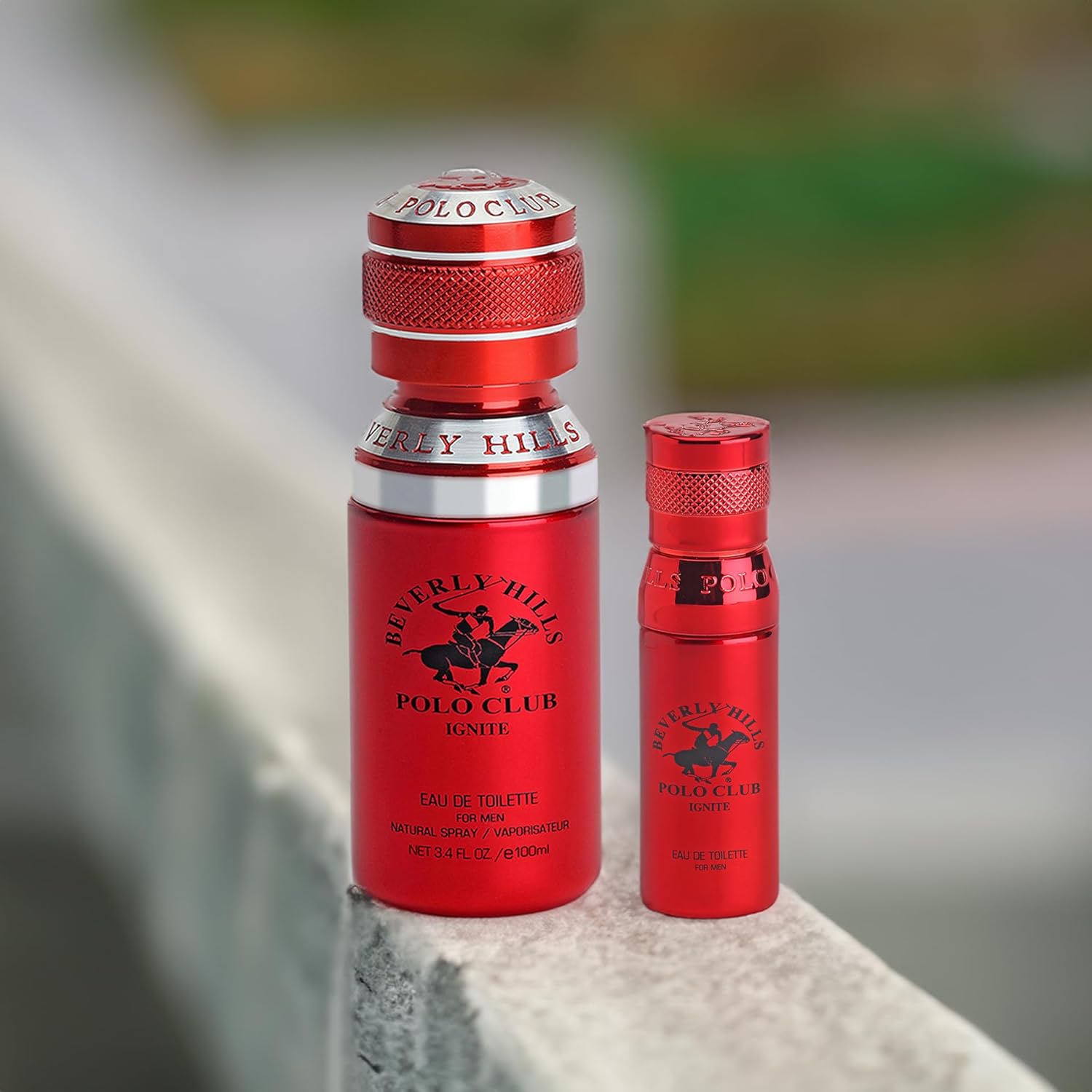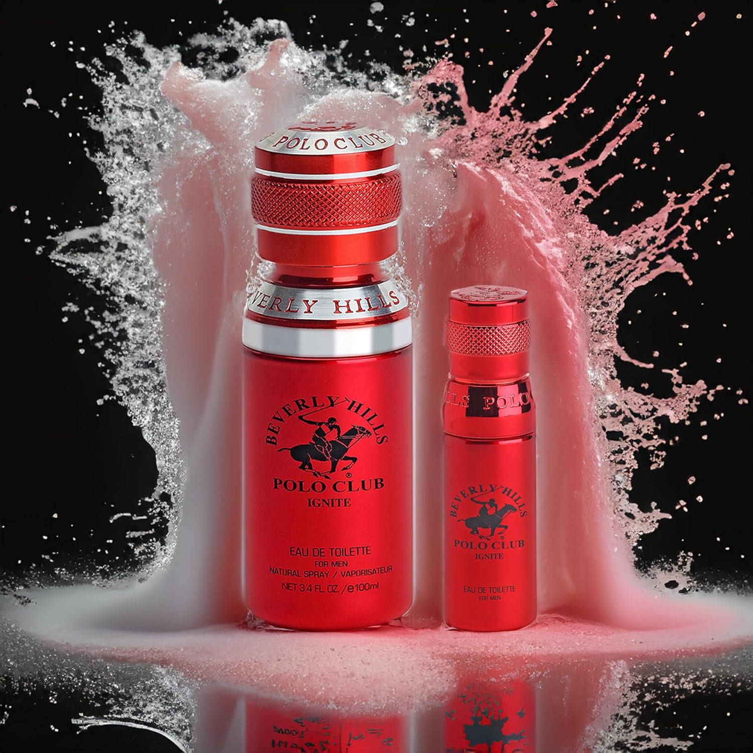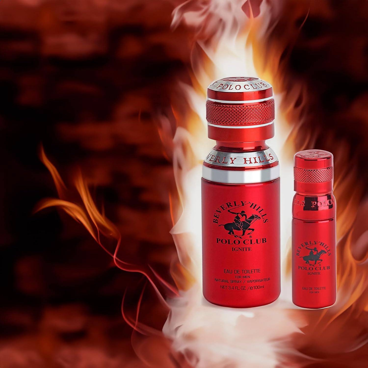 Beverly Hills Polo Club Ignite Men's Cologne Bonus Pack - Designer Eau De Toilette Spray Set 3.4oz & Travel 0.5oz - Long-Lasting, Alluring, Signature Fragrance for the Modern Man