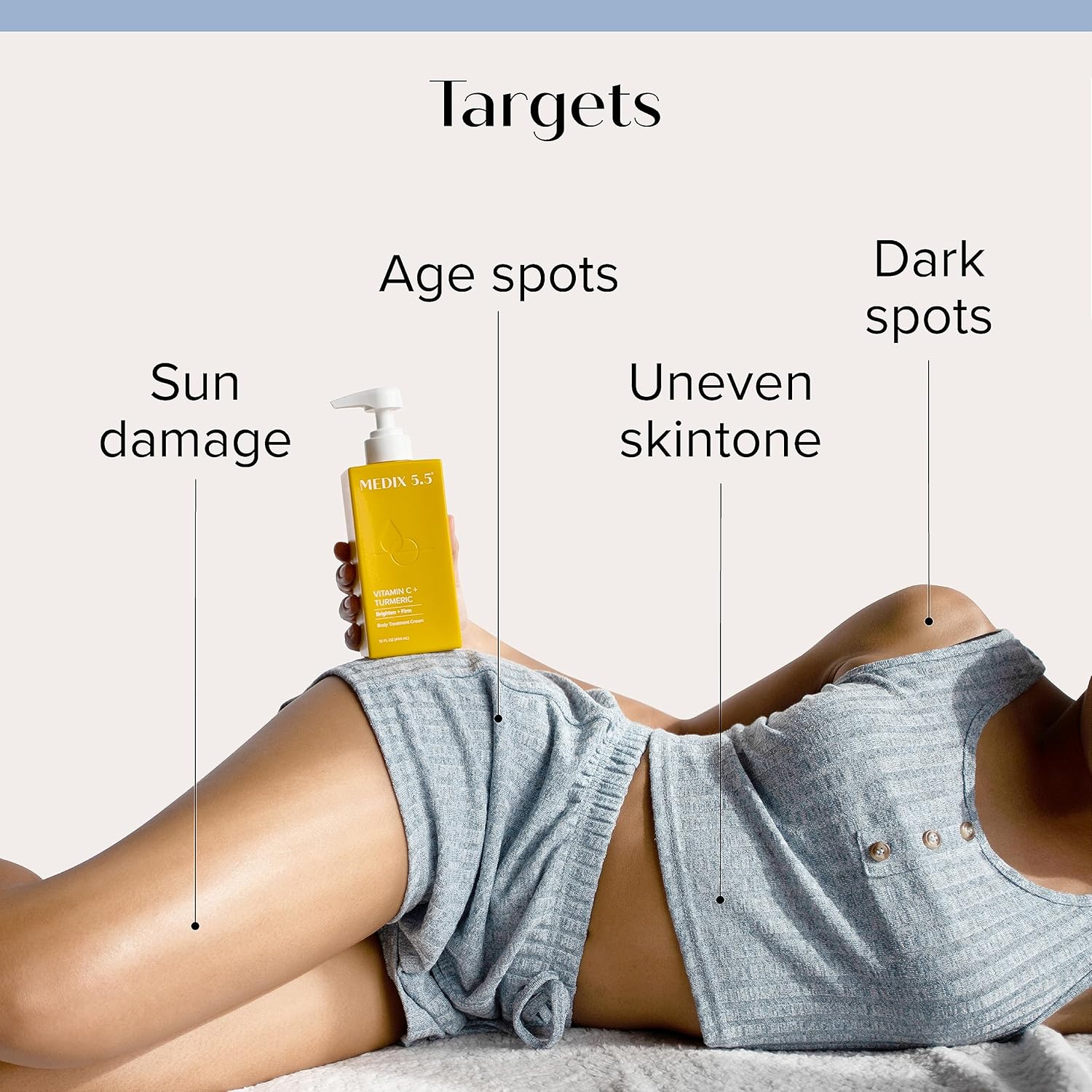 - RADIANT SKIN – Medix 5.5 Vitamin C Cream Brighten + Firm Body Lotion is formulated with the perfect combination of effective anti aging + brightening ingredients, including Shea Butter, Aloe Vera, Ferulic Acid, Turmeric, Vitamin E, Glycerin, Ginger, & More. Shea Butter deeply moisturizes the skin, improves elasticity, & provides a protective barrier to help prevent moisture loss. Vitamin E helps protect skin against free radicals + UV Damage. Aloe Vera helps calm + hydrate the skin.
